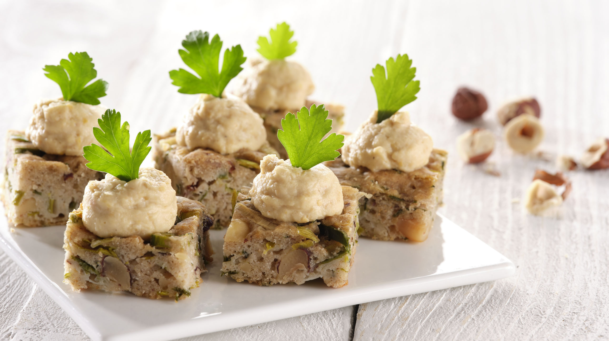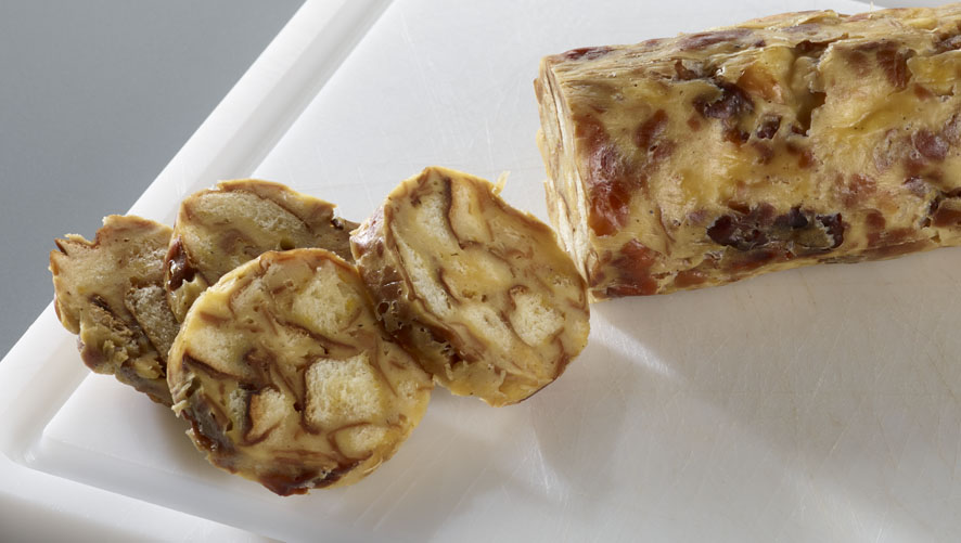 After cooking, unwrap the roll, allow to cool completely, and cut into even slices approx. 1 cm thick. Top the slices as desired.