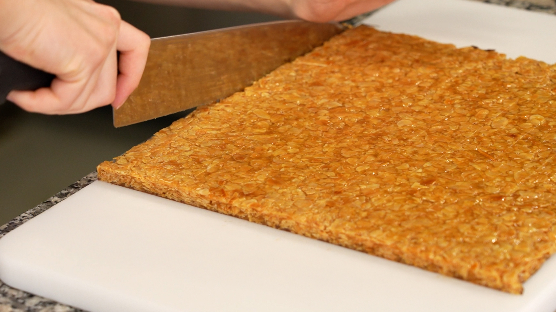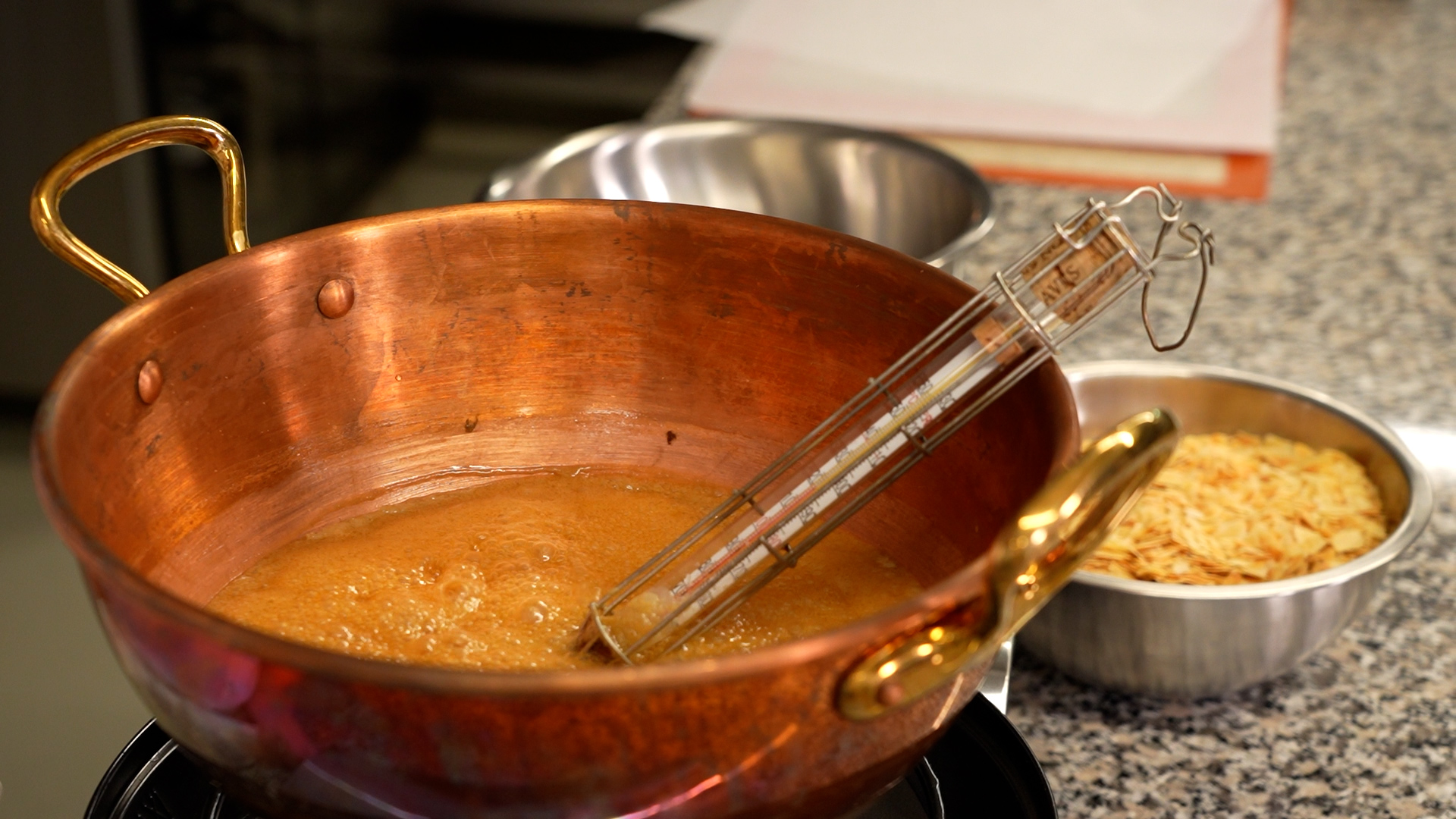 In the course you will learn the professional production of honey nougat from scratch. You will learn how to boil sugar, honey and cream to the point, achieve the ideal roasting of the almonds, stabilize the mass correctly and cut and coat the product properly.