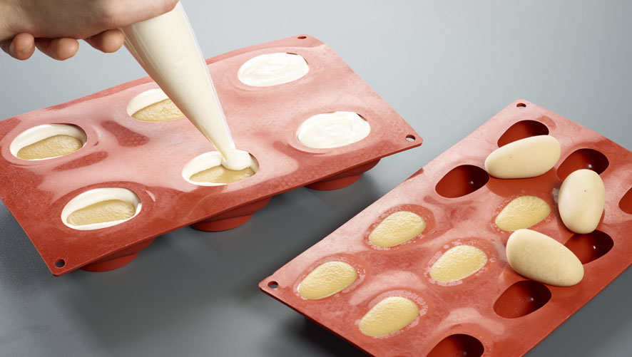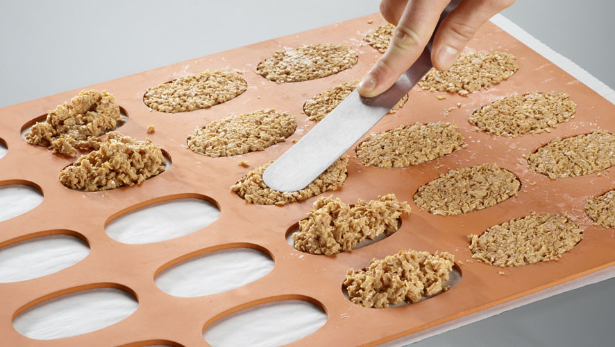 Spread about 25 g of the mixture into silicone molds with oval cavities (approx. 8×4 cm) and smooth the surface.