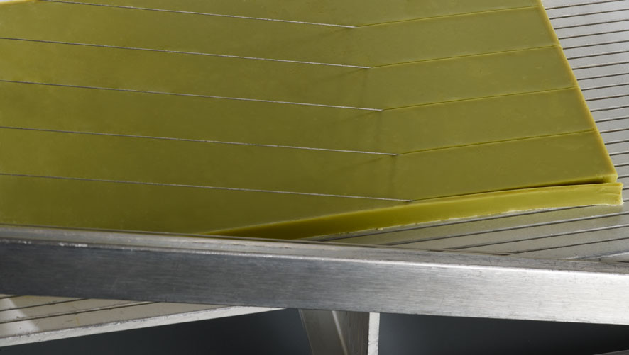 Coat the surface of the ganache sheet thinly with approx. 25 g of the tempered Rondo Edelweiss couverture.