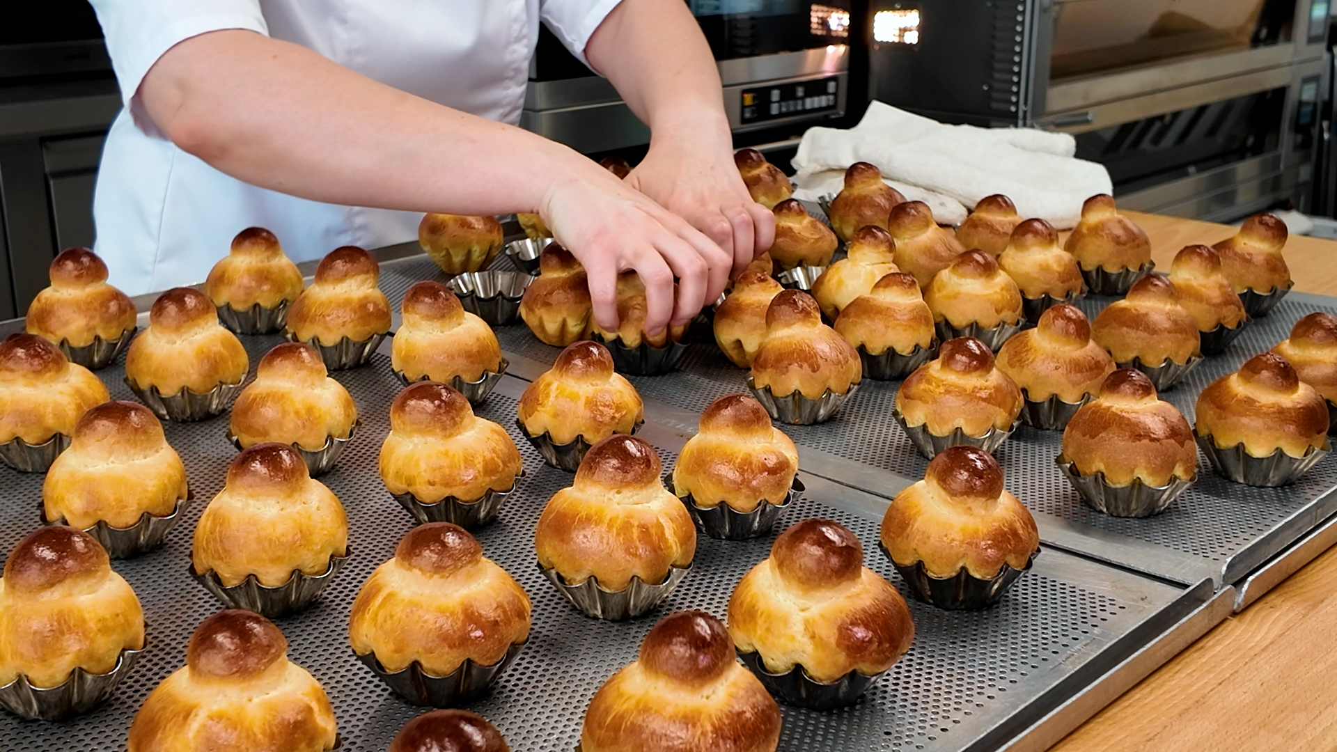 Du lernst den Umgang mit einem reichhaltigen Hefeteig, das gezielte Kneten, Portionieren und Formen sowie die typische Technik, wie der kleine Teigkopf elegant aufgesetzt wird. Unsere Fachexpertin erklärt dir alle Schritte klar, strukturiert und praxisnah.