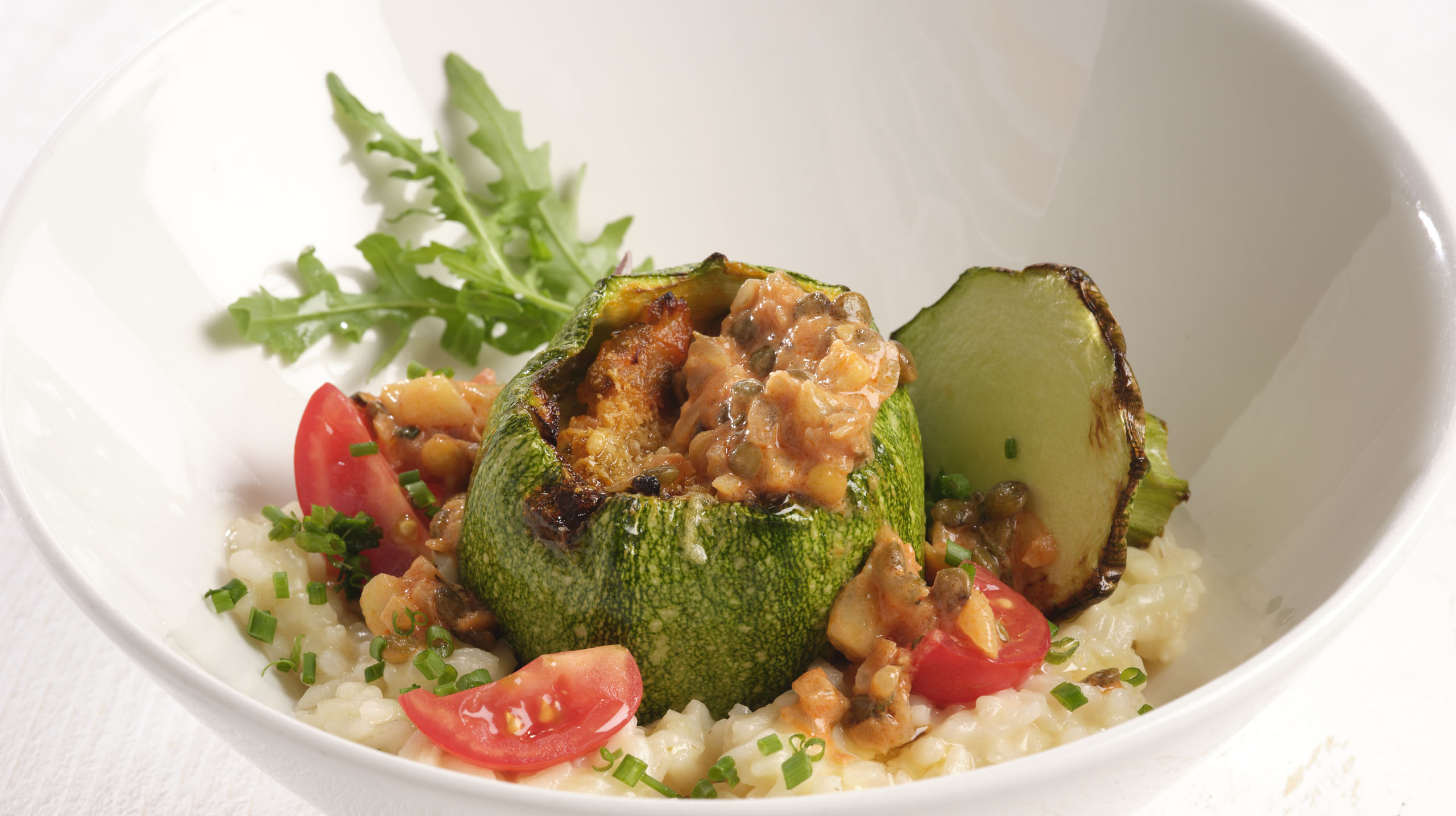 Gefülltes Basilikum-Kalbsschnitzel mit gedünsteten Tomaten