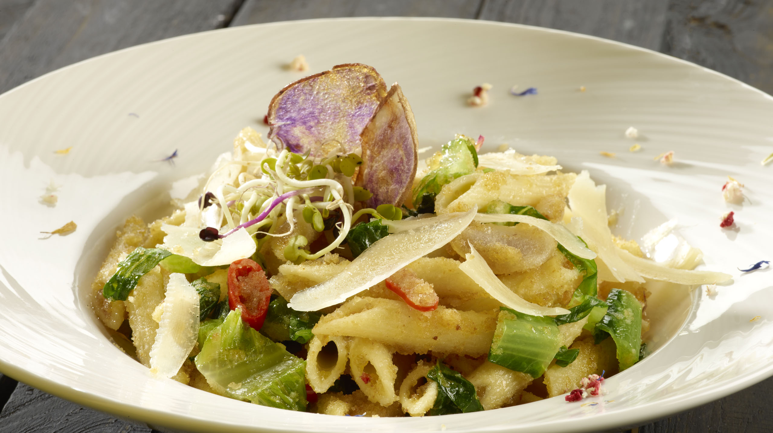 Tagliatelle an einer Kaffee-Whisky-Sauce mit sautierten Steinpilzen