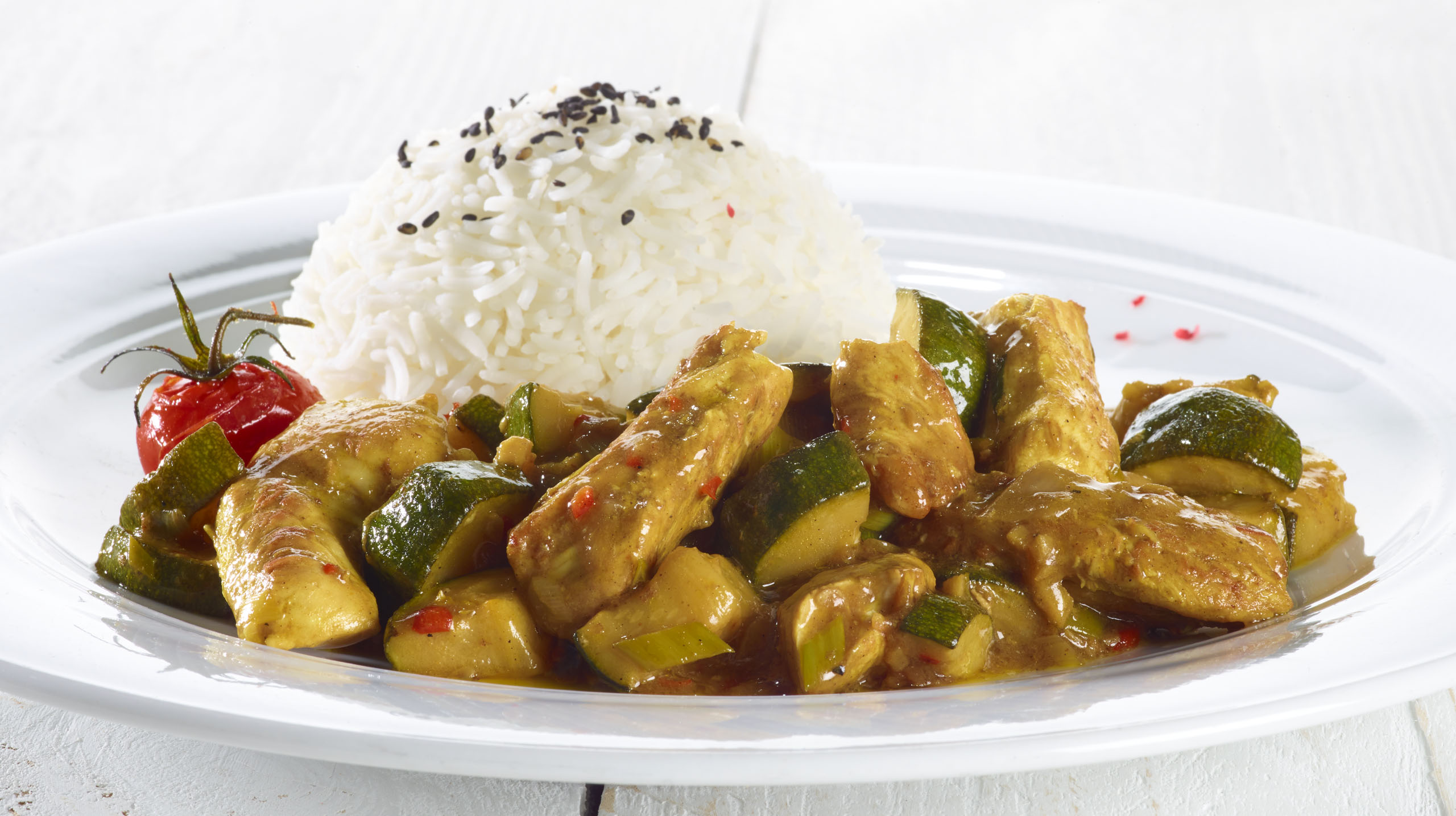 Pouletbrustwürfel mit Zucchetti und Frühlingszwiebeln