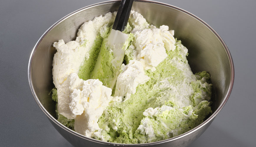 Edamame im Thermomixer gut mixen, Salz und Cayennepfeffer beigeben und alles zusammen vermischen. Rahm leicht steif schlagen und am Schluss unterheben.