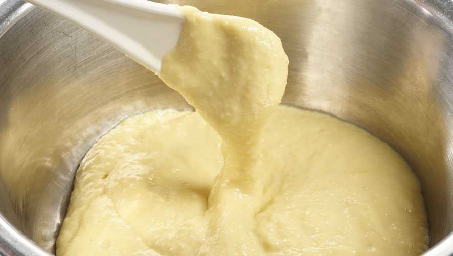 Die Masse mit einem Dressiersack mit einer 12er Tülle direkt in das heisse Fett portionieren.