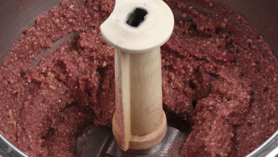 Alle Zutaten im Stephanmixer etwa 5 Minuten mixen. Es dürfen noch kleine Mandelstückchen bestehen bleiben.